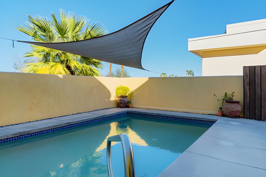 Our swimming pool shades in Dubai feature high-performance materials that block harmful rays and minimise heat buildup around the pool.